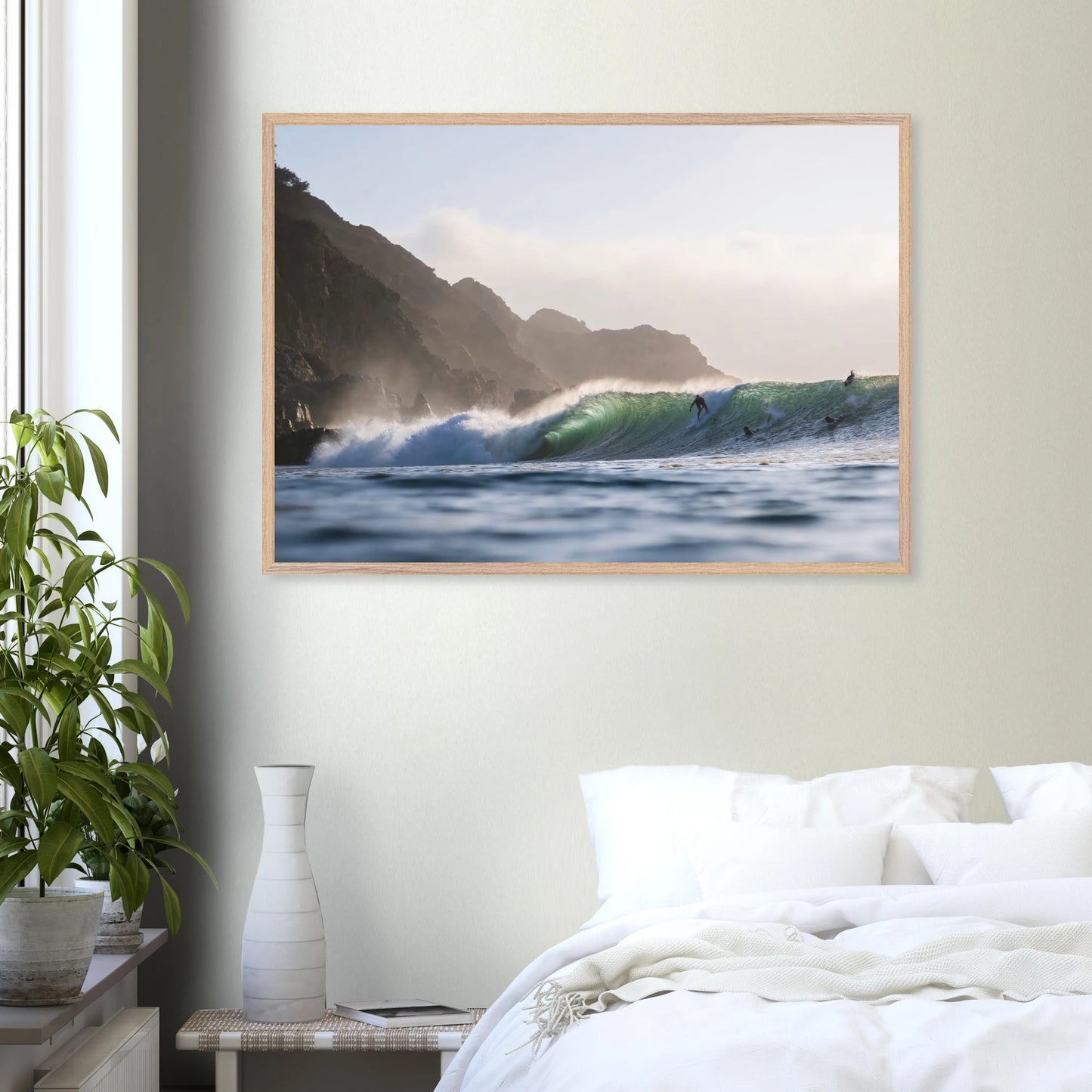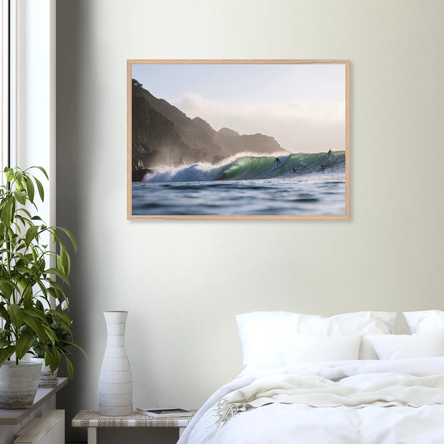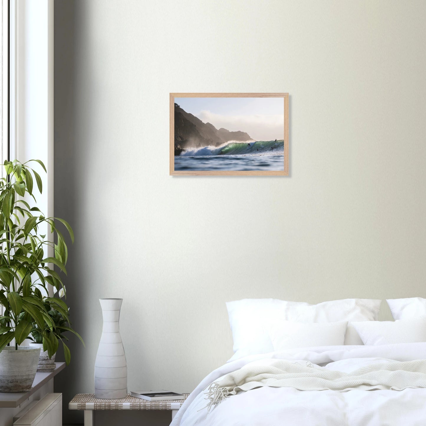 Gedruckt auf 200 g/m² starkem, FSC-zertifiziertem Premiumpapier mit matter, glatter Oberfläche – reflexfrei und samtweich. Das Poster wird durch bruchsicheres Plexiglas geschützt und ist in einem edlen Galerie-Holzrahmen aus verantwortungsvoll bezogener Eiche oder Esche gerahmt. Der Rahmen ist 20 mm dick und breit, mit sichtbarer Holzmaserung, und in den Farben Natur, Weiß oder Schwarz erhältlich. Ein passendes Aufhängeset ist enthalten – ready to hang.