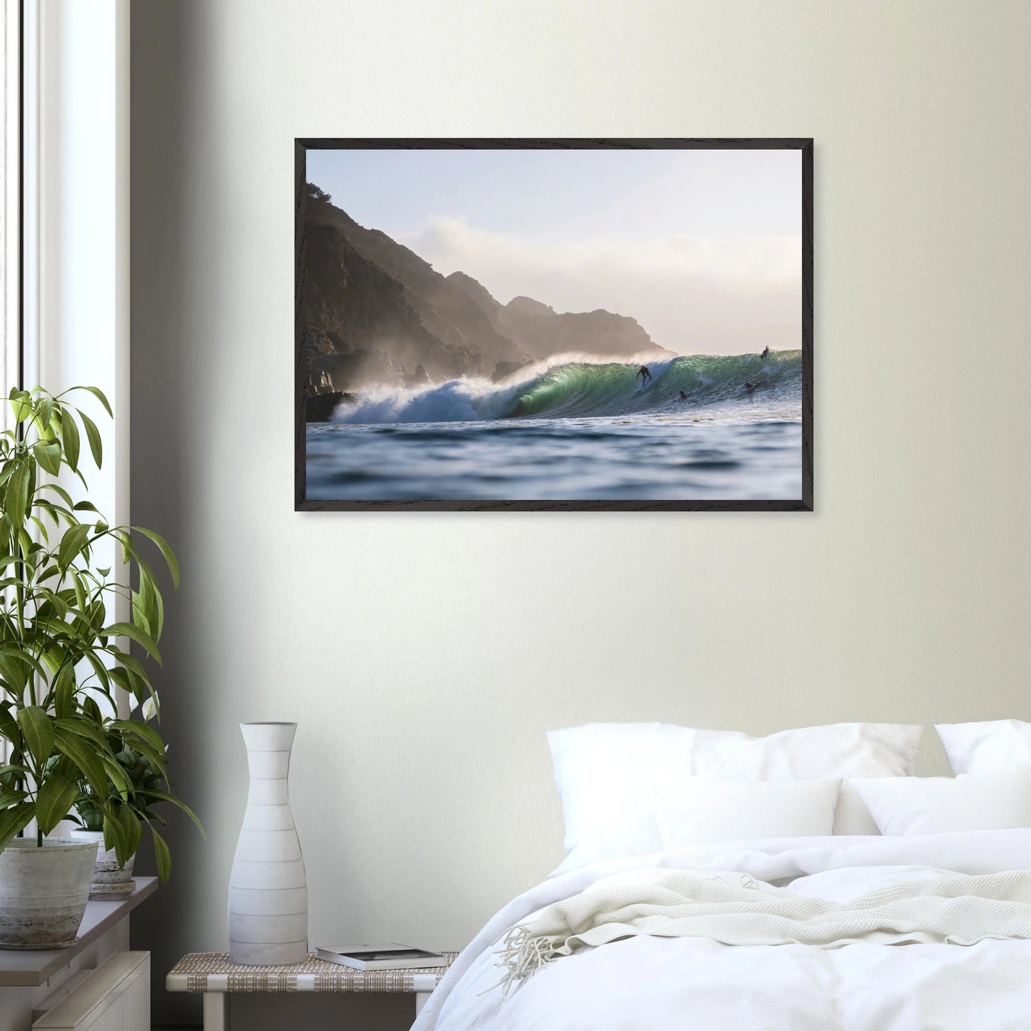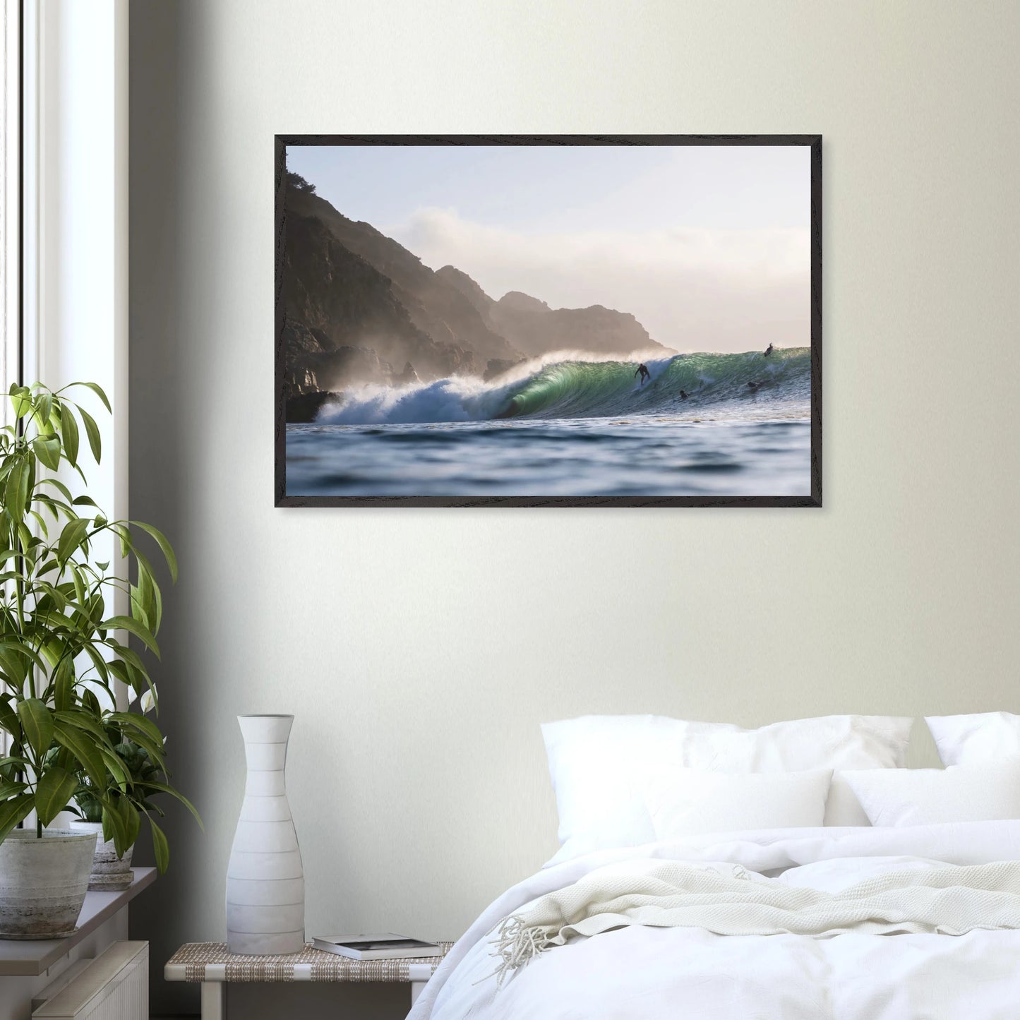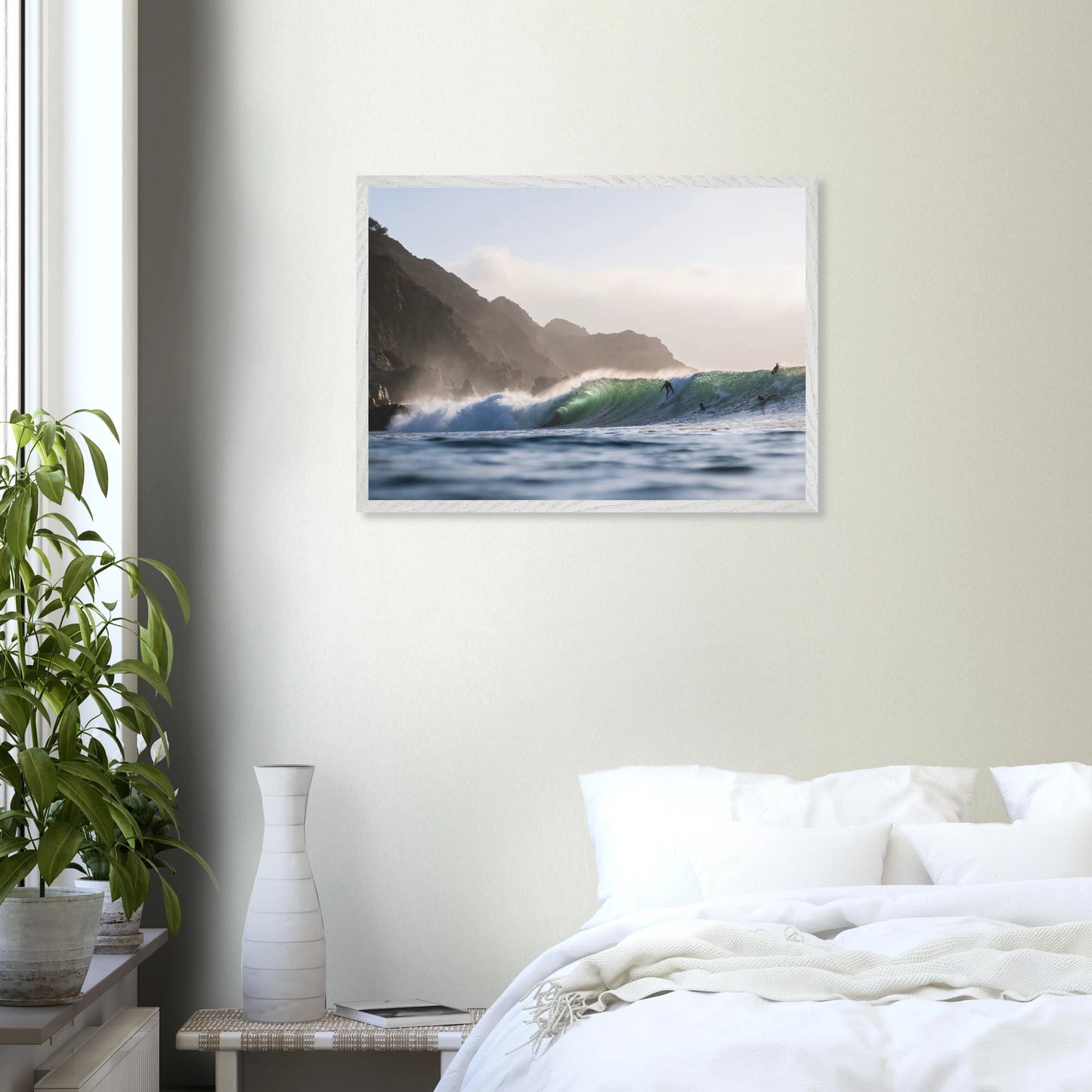Gedruckt auf 200 g/m² starkem, FSC-zertifiziertem Premiumpapier mit matter, glatter Oberfläche – reflexfrei und samtweich. Das Poster wird durch bruchsicheres Plexiglas geschützt und ist in einem edlen Galerie-Holzrahmen aus verantwortungsvoll bezogener Eiche oder Esche gerahmt. Der Rahmen ist 20 mm dick und breit, mit sichtbarer Holzmaserung, und in den Farben Natur, Weiß oder Schwarz erhältlich. Ein passendes Aufhängeset ist enthalten – ready to hang.