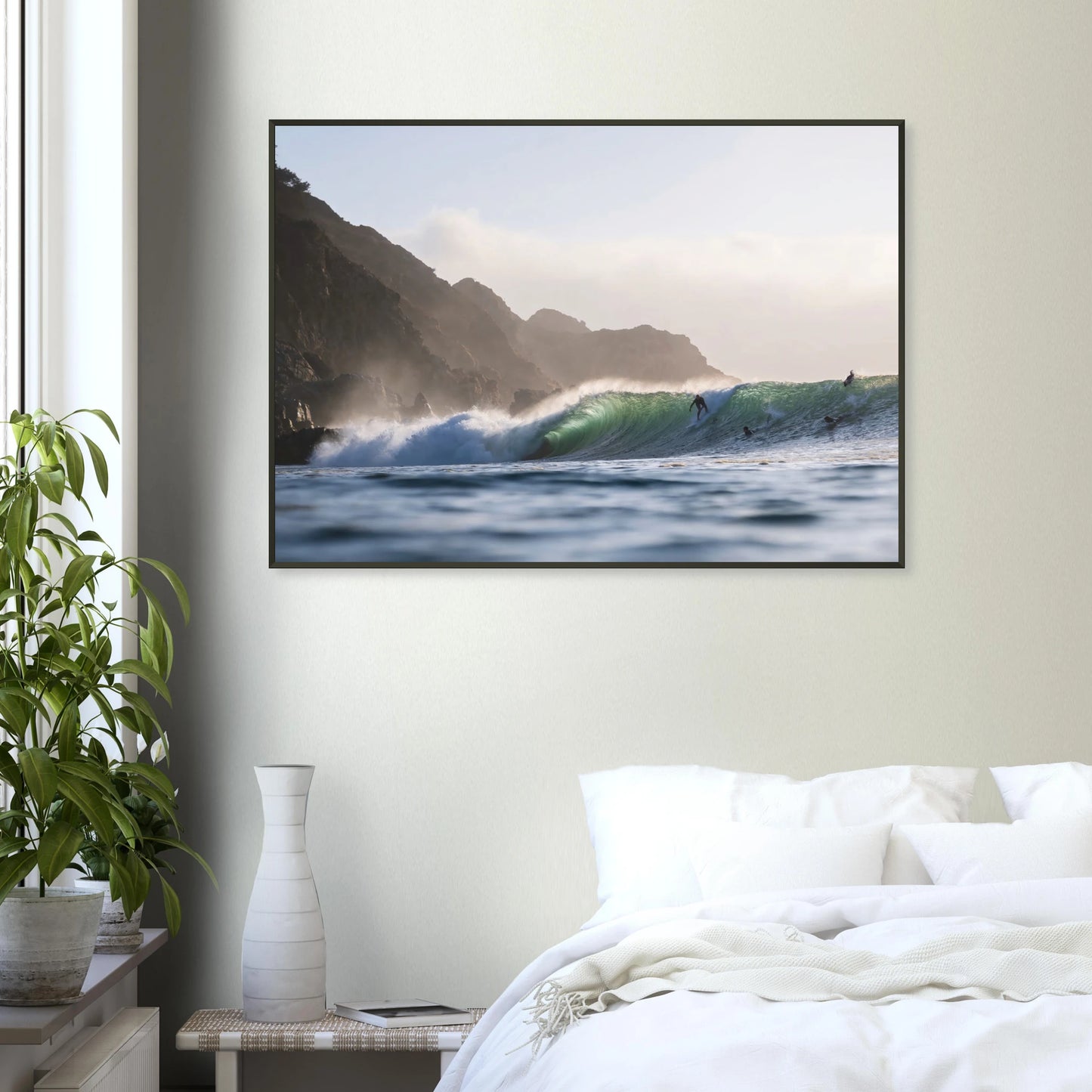 Gedruckt auf 200 g/m² starkem, FSC-zertifiziertem Premiumpapier mit matter, glatter Oberfläche. Die Farben wirken natürlich und weich – ohne Lichtreflexe, mit hochwertigem, zeitlosem Charakter. Das Poster wird durch bruchsicheres Plexiglas geschützt und in einem schlanken Aluminiumrahmen in Schwarz präsentiert. Der Rahmen ist ca. 20 mm tief und 10 mm breit – stabil, leicht und modern. Poster und Rahmen werden gemeinsam geliefert und lassen sich mit dem beiliegenden Aufhängeset einfach montieren.