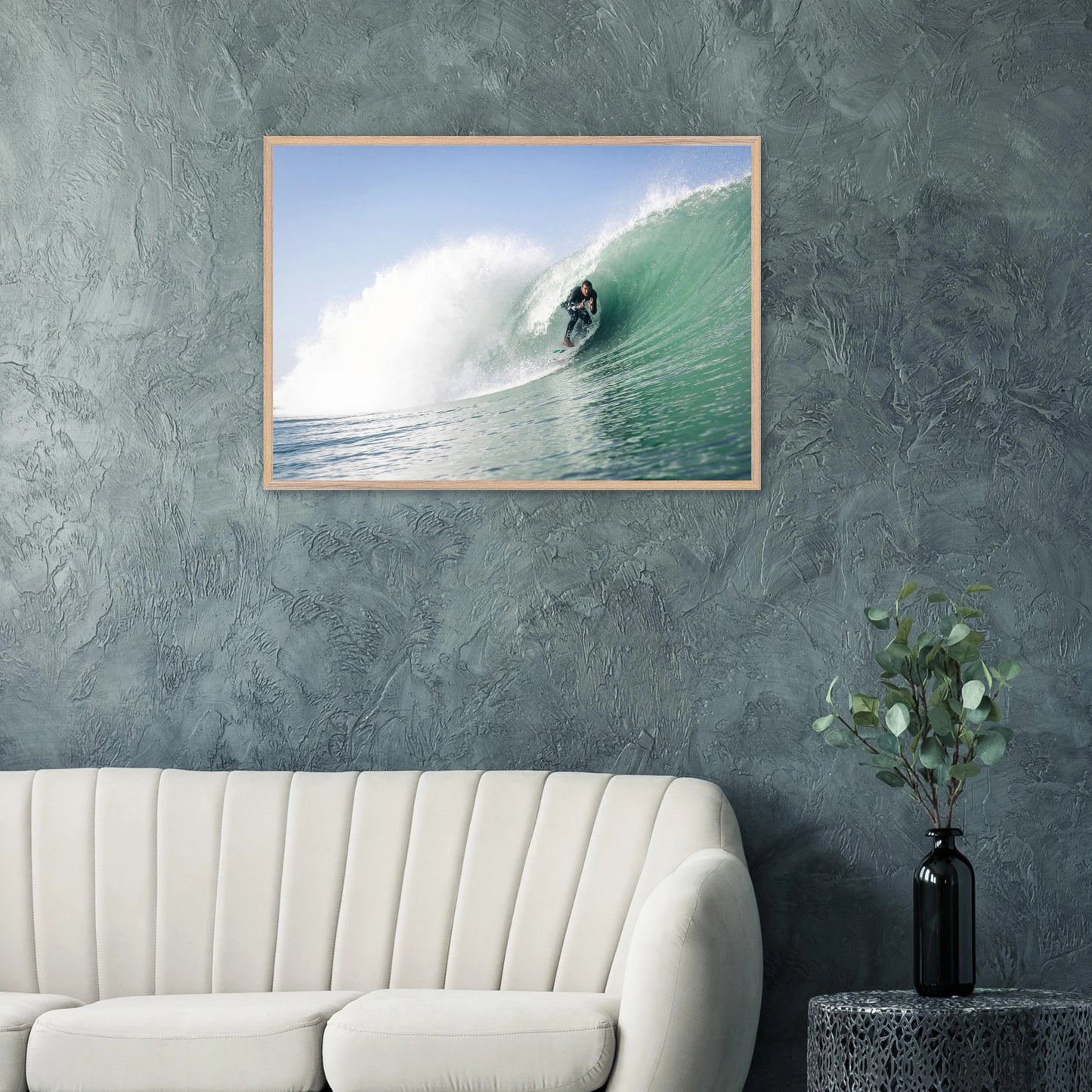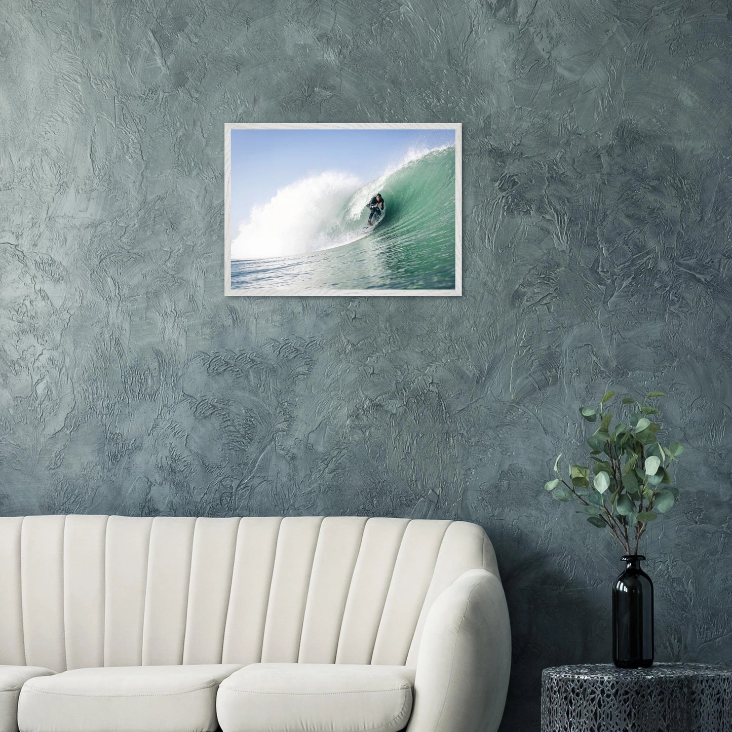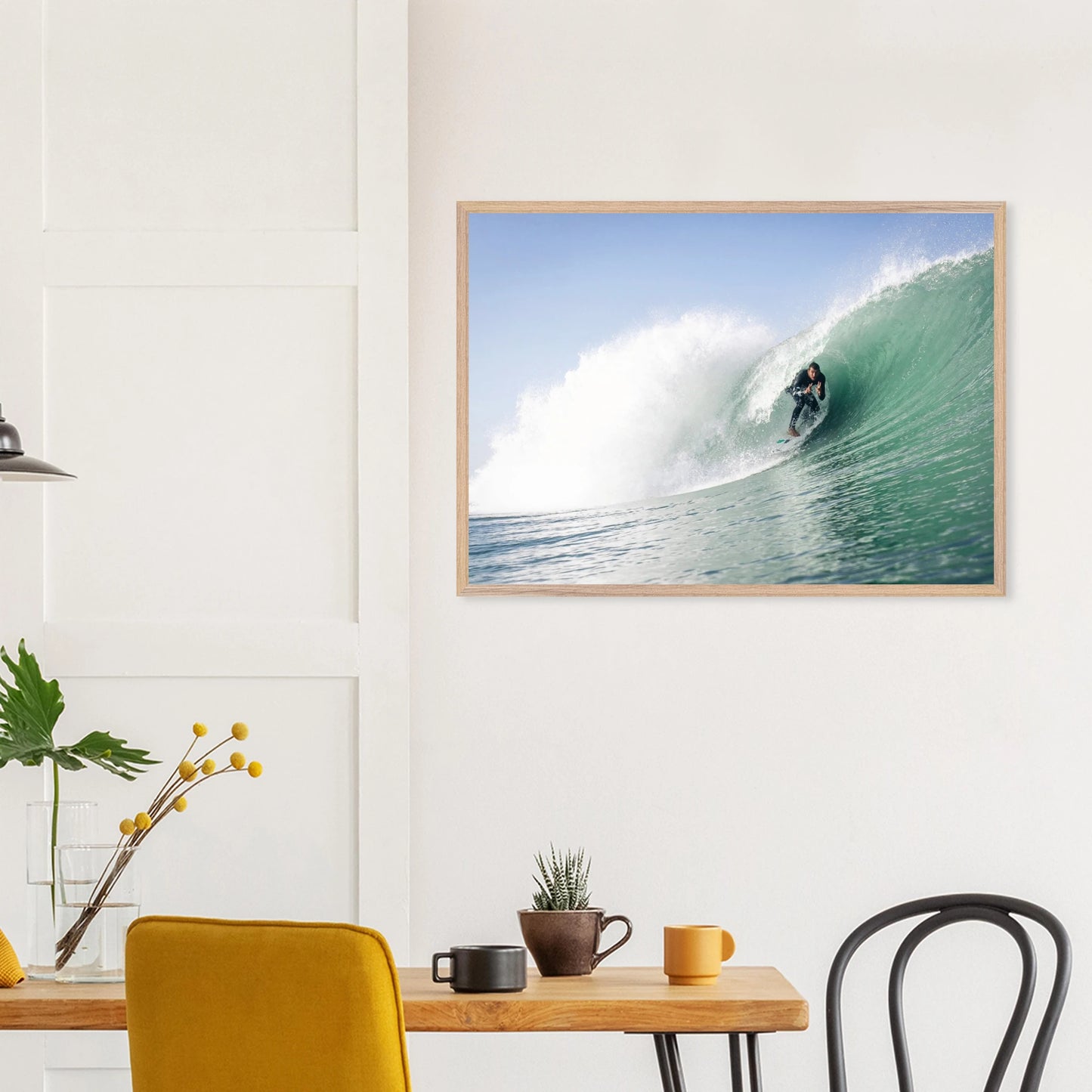 Gedruckt auf 200 g/m² starkem, FSC-zertifiziertem Premiumpapier mit matter, glatter Oberfläche – reflexfrei und samtweich. Das Poster wird durch bruchsicheres Plexiglas geschützt und ist in einem edlen Galerie-Holzrahmen aus verantwortungsvoll bezogener Eiche oder Esche gerahmt. Der Rahmen ist 20 mm dick und breit, mit sichtbarer Holzmaserung, und in den Farben Natur, Weiß oder Schwarz erhältlich. Ein passendes Aufhängeset ist enthalten – ready to hang.