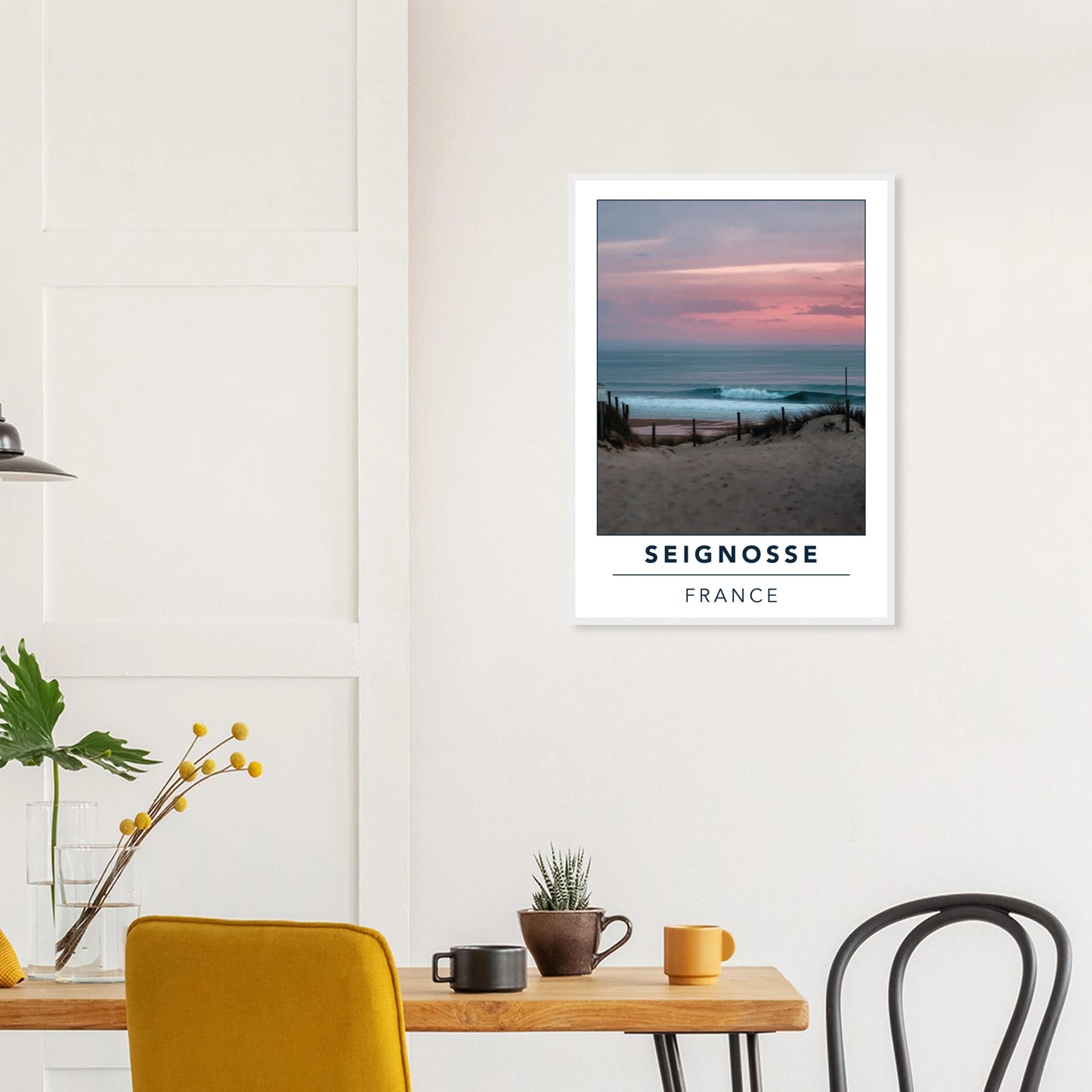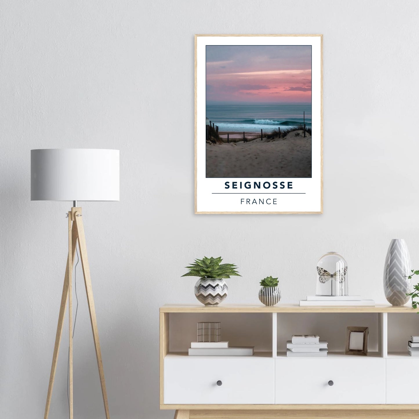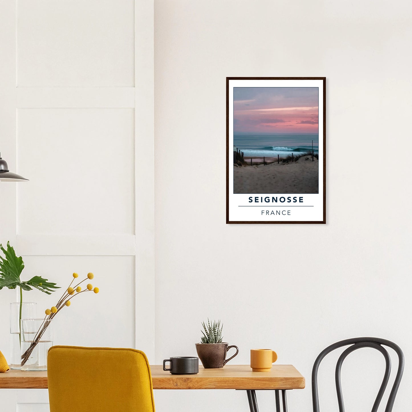 Gedruckt auf 200 g/m² starkem, FSC-zertifiziertem Premiumpapier mit matter, glatter Oberfläche – reflexfrei und samtweich. Das Poster wird durch bruchsicheres Plexiglas geschützt und ist in einem stabilen Holzrahmen aus langlebigem Kiefernholz eingefasst (ca. 2 cm tief). Der Rahmen ist in vier Farbvarianten erhältlich: Naturholz, Schwarz, Weiß und Dunkelbraun – jeweils mit sichtbarer Holzmaserung. Die Rückseite ist geschlossen, ein Aufhängeset ist enthalten – ready to hang.